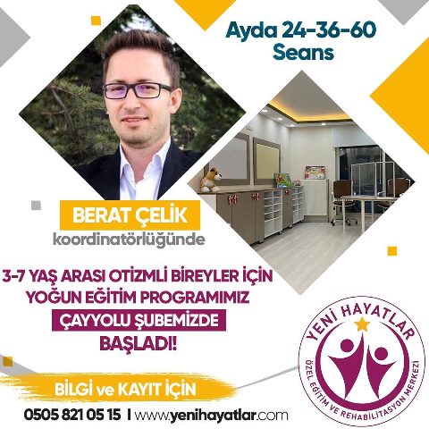 3-7 yaş arası otizmli çocukları ise yoğun eğitim programı uygulayacağımız şekilde Yeni Hayatlar Özel Eğitim Merkezinin Çayyolu şubesinde alacağız.