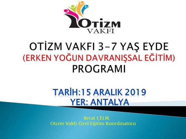 Otizm Vakfı eğitim koordinatörü, Özel Eğitim Öğretmeni Berat ÇELİK verecektir.